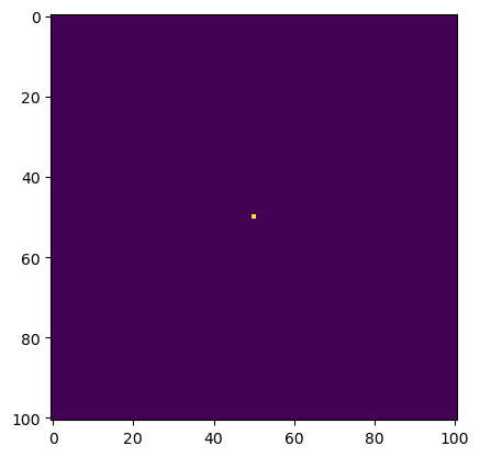 Next, we’ll set our initial condition, setting a point in the middle to have a heat of \(1\).